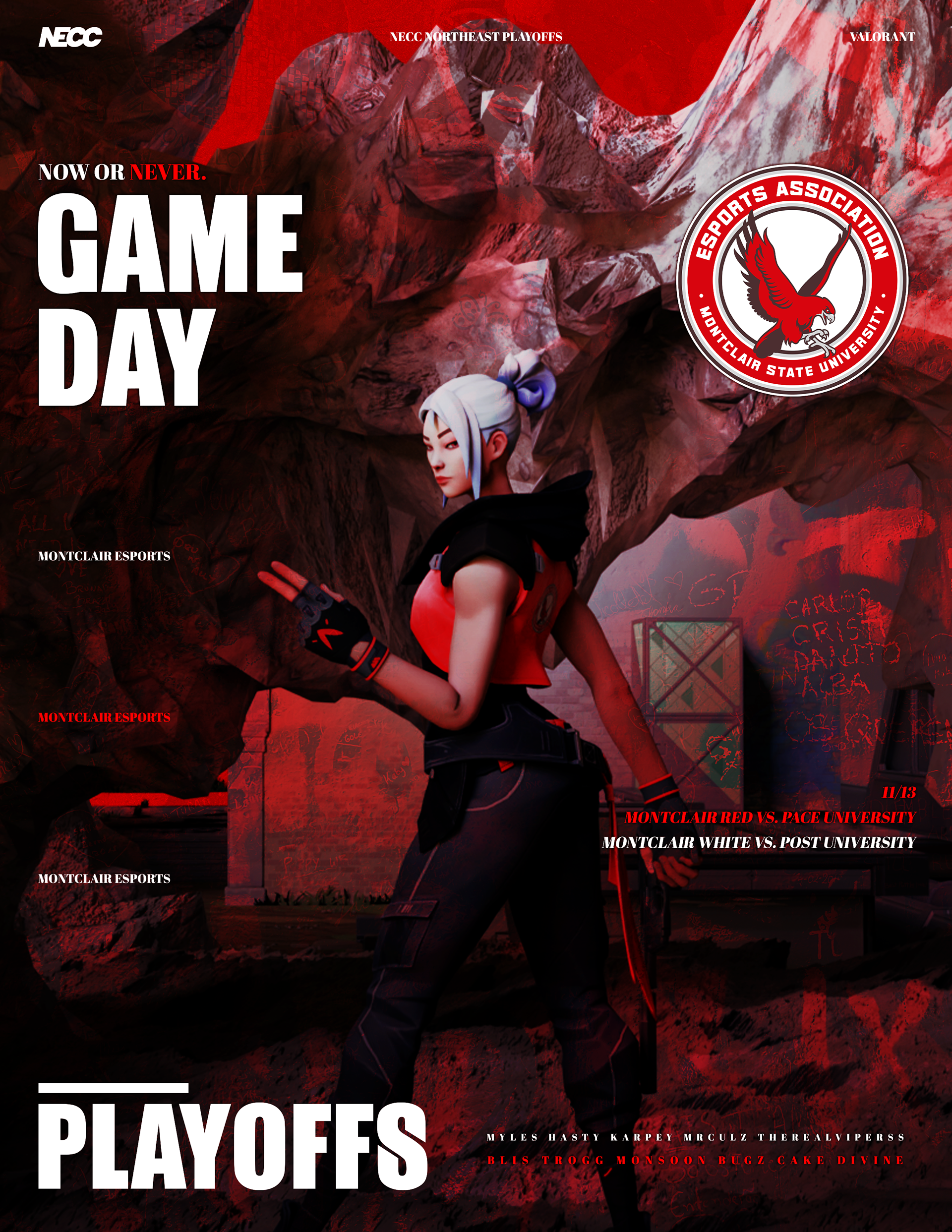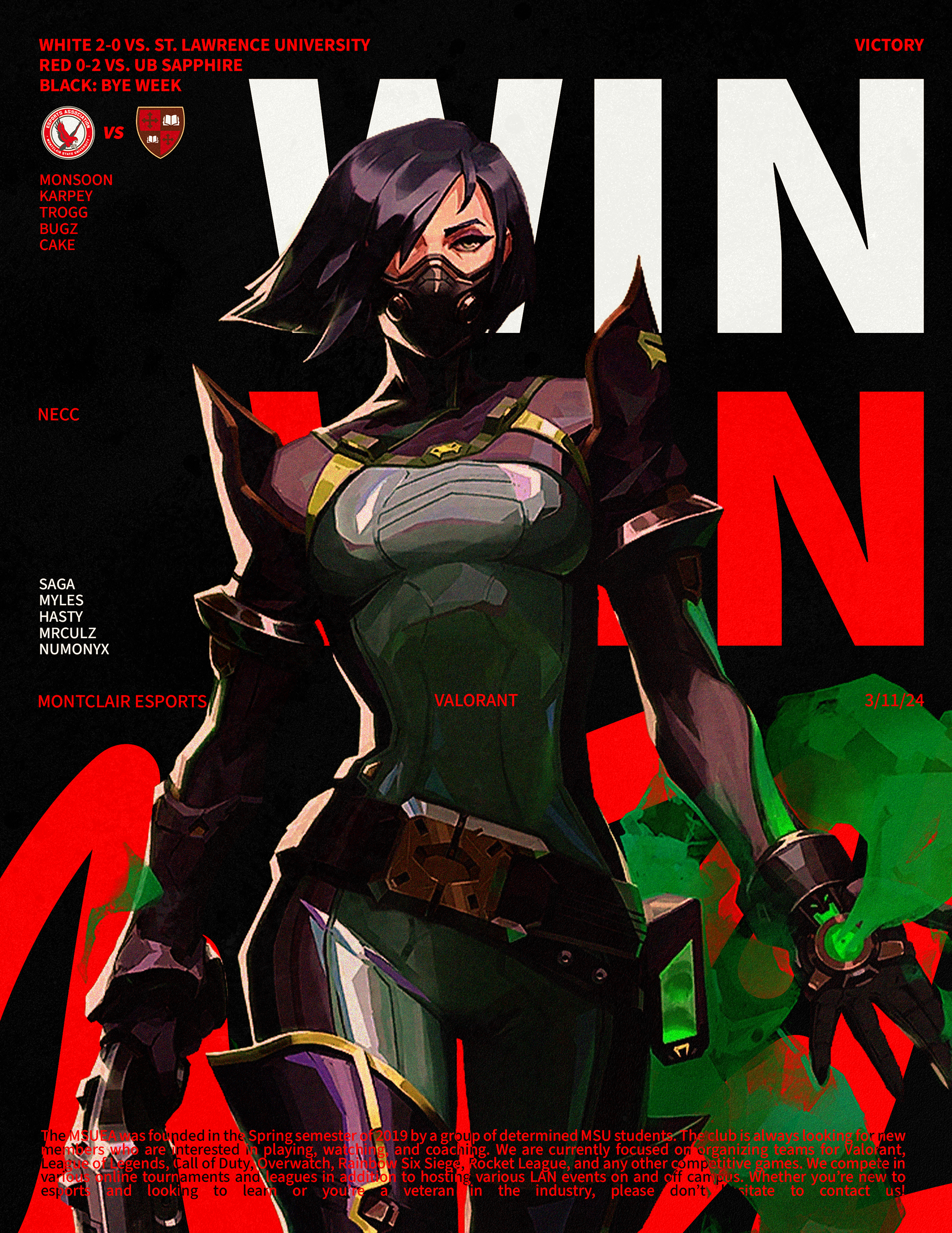 Montclair Esports was the club I was involved in during my time at Montclair State University, where I served as the graphic designer. During the 2023 to 2024 year, I focused on incorporating new skills, especially 3D design, to showcase my growth and help establish a strong visual identity for the club. Below are some of my favorite projects I created during that time. In the spring semester, I shifted away from the heavy use of 3D that defined my fall work. Instead, I aimed to combine multiple skills by integrating 3D renders with motion rather than relying on static 3D visuals. I also began learning After Effects, which allowed me to create content such as roster reveals and add motion to gameday and results graphics.